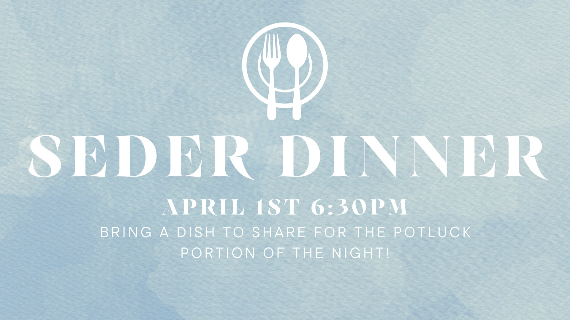 Wednesday April 1st at 6:30pm we will be having our Passover Seder Dinner! Join us to get connected with one another and share a meal that would have been similar to that of the last supper. We will meet at the church and begin with the Passover Seder portion. Then after the Seder portion we will be having a potluck so please bring a dish to share. All ages welcome!